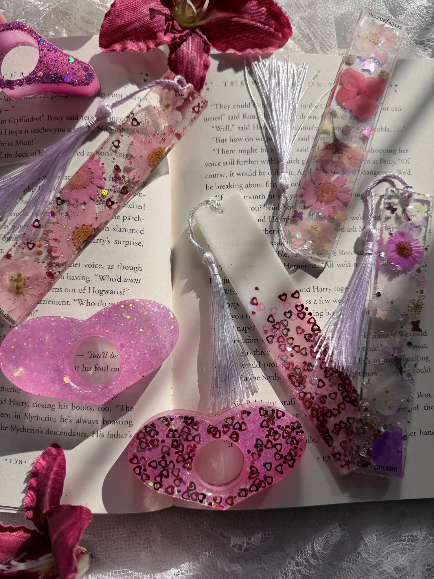 Resin bookmarks are approximately 3mm thick and include a tassel. Keychains and...