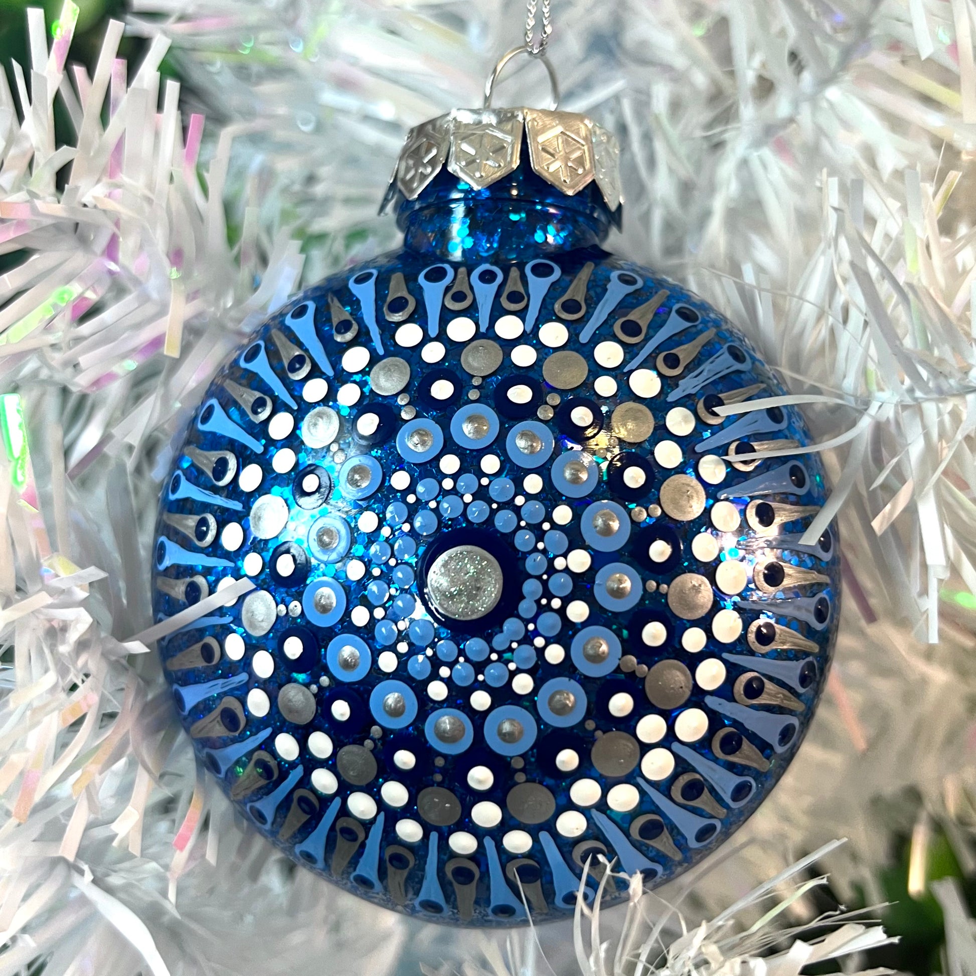 Blue White Silver 2- Dot Painted Ornament