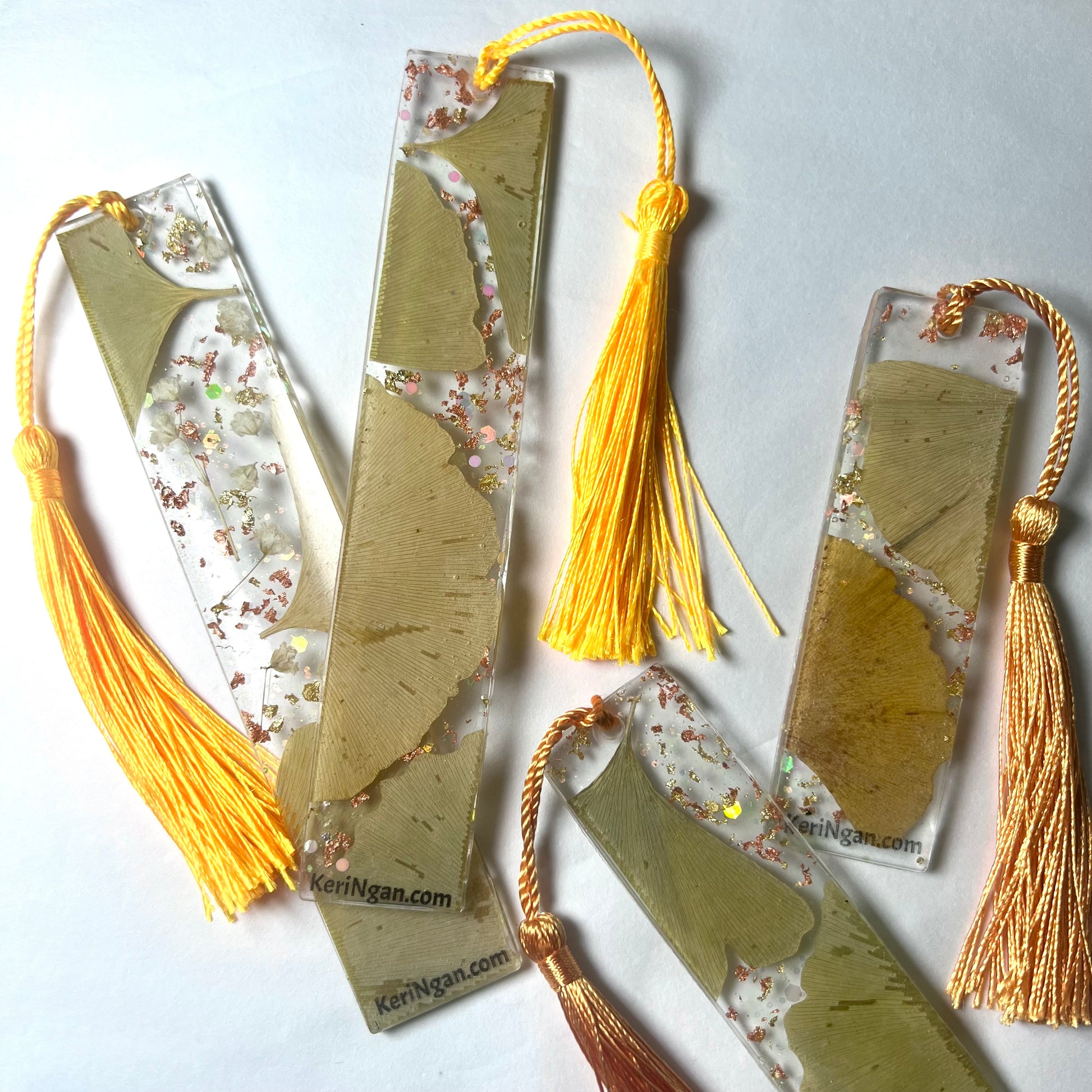 Pressed Ginkgo leaves, copper foil, and gold foil. Includes a tassel. Bookmarks are handmade and may vary in thickness and smoothness. Great gifts for book lovers and teachers!