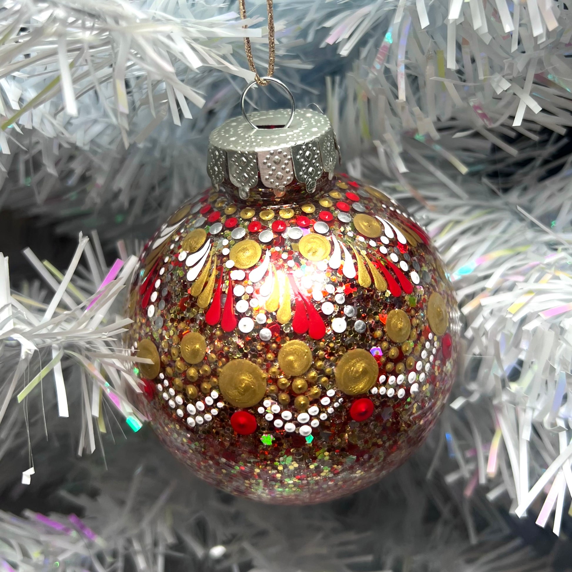 Red Gold White Shimmer - Dot Paint Ball Ornament