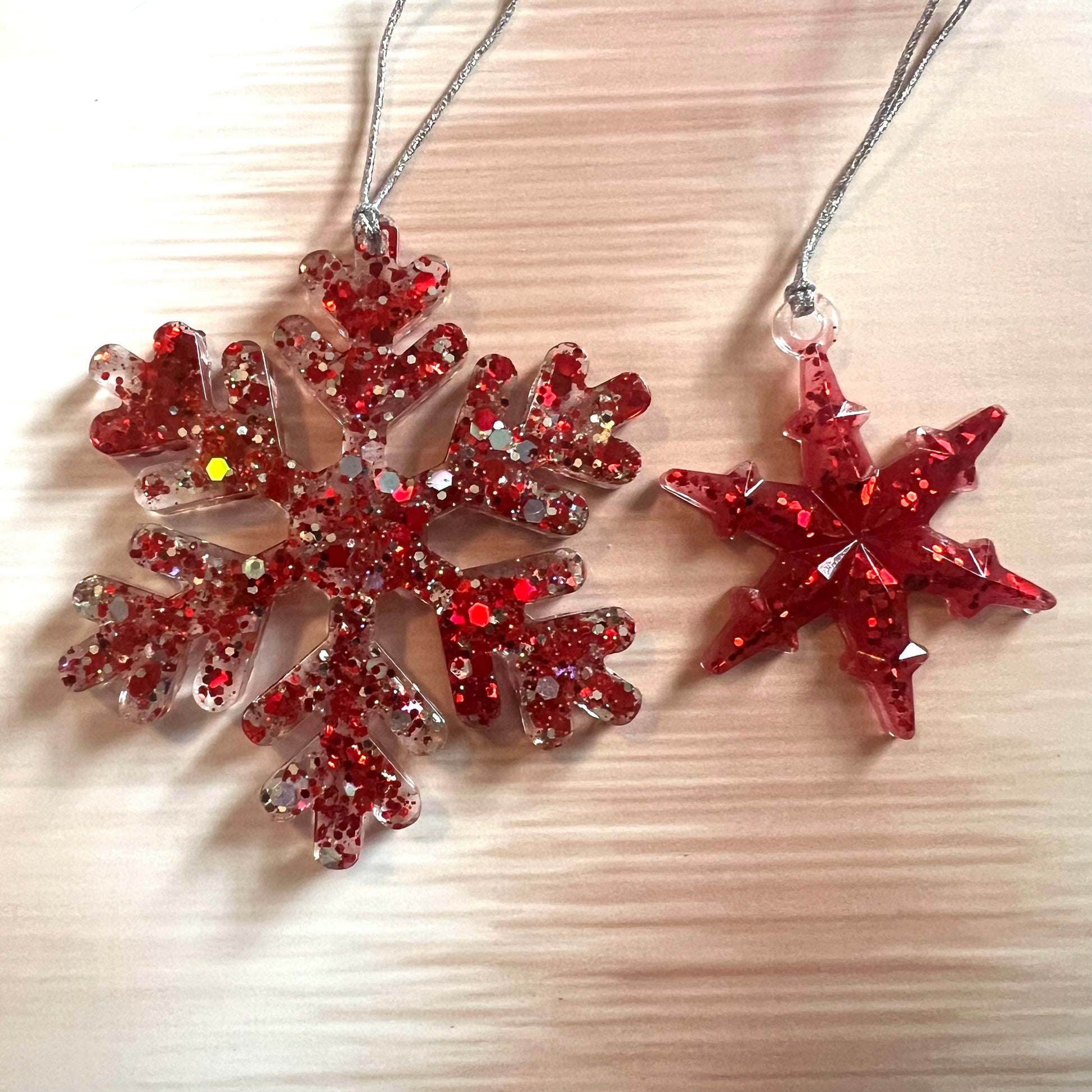Blue, silver, and snowflake themed resin ornament. 2 and 3 inches.