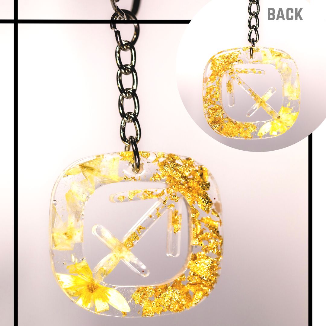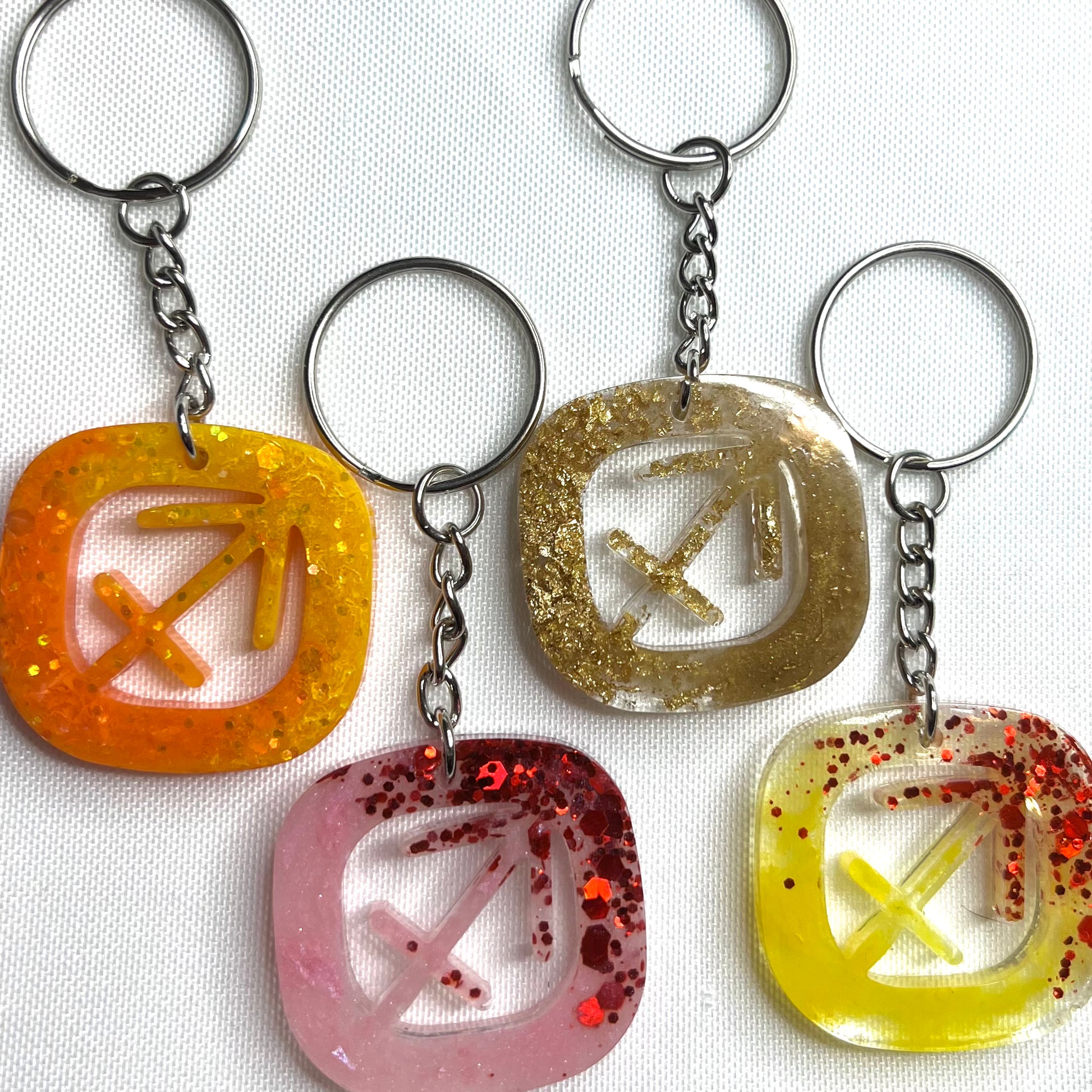 Resin keychains for Sagittarius friends! Each zodiac keychain charm is uniquely made, but has the fire element theme in mind for the colors. Reds, oranges, yellows, and golds were used to represent the Sagittarius fire element incased in the zodiac sign. Resin keychains include a combination of pigment, glitter, foil, or pressed flowers.