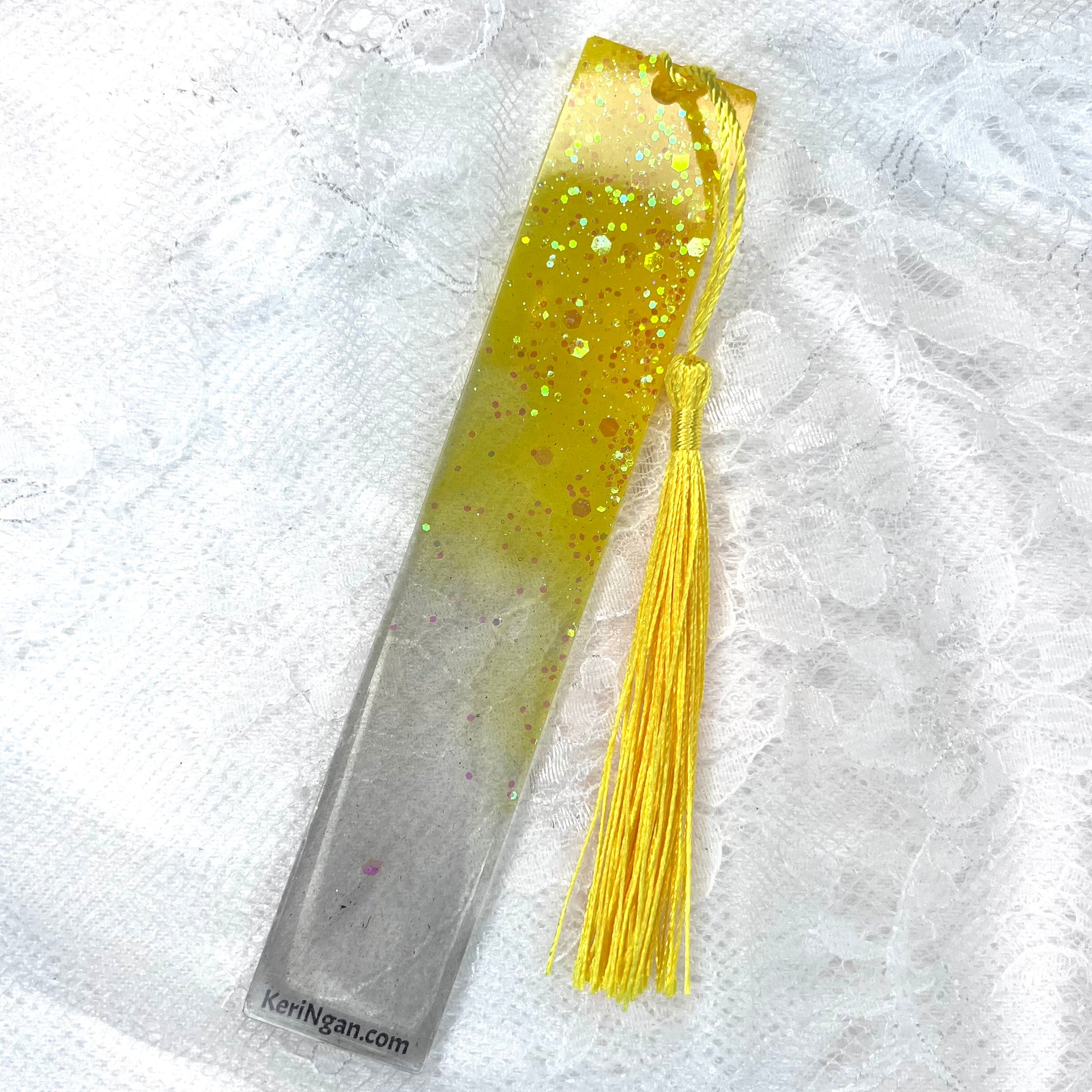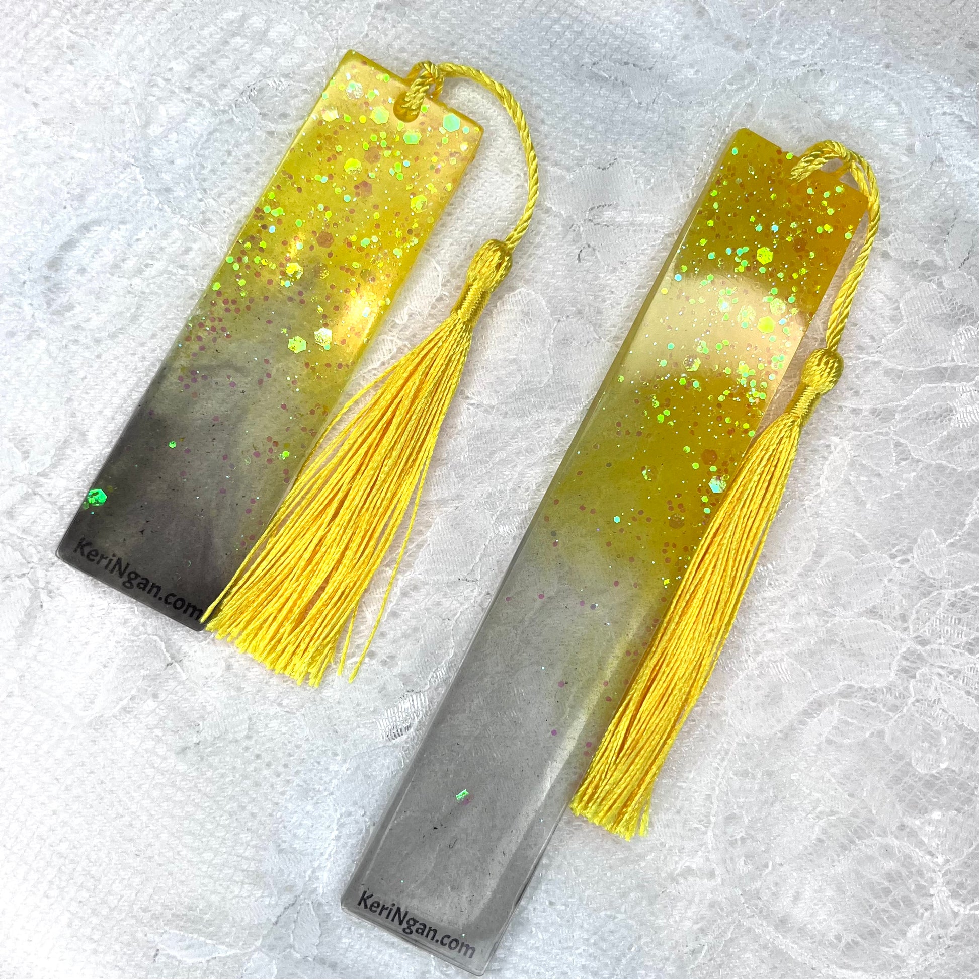 Yellow glitter to black resin bookmark. Great for a Hufflepuff! Includes a tassel. Bookmarks are handmade and may vary in thickness and smoothness. Great gifts for book lovers and teachers!